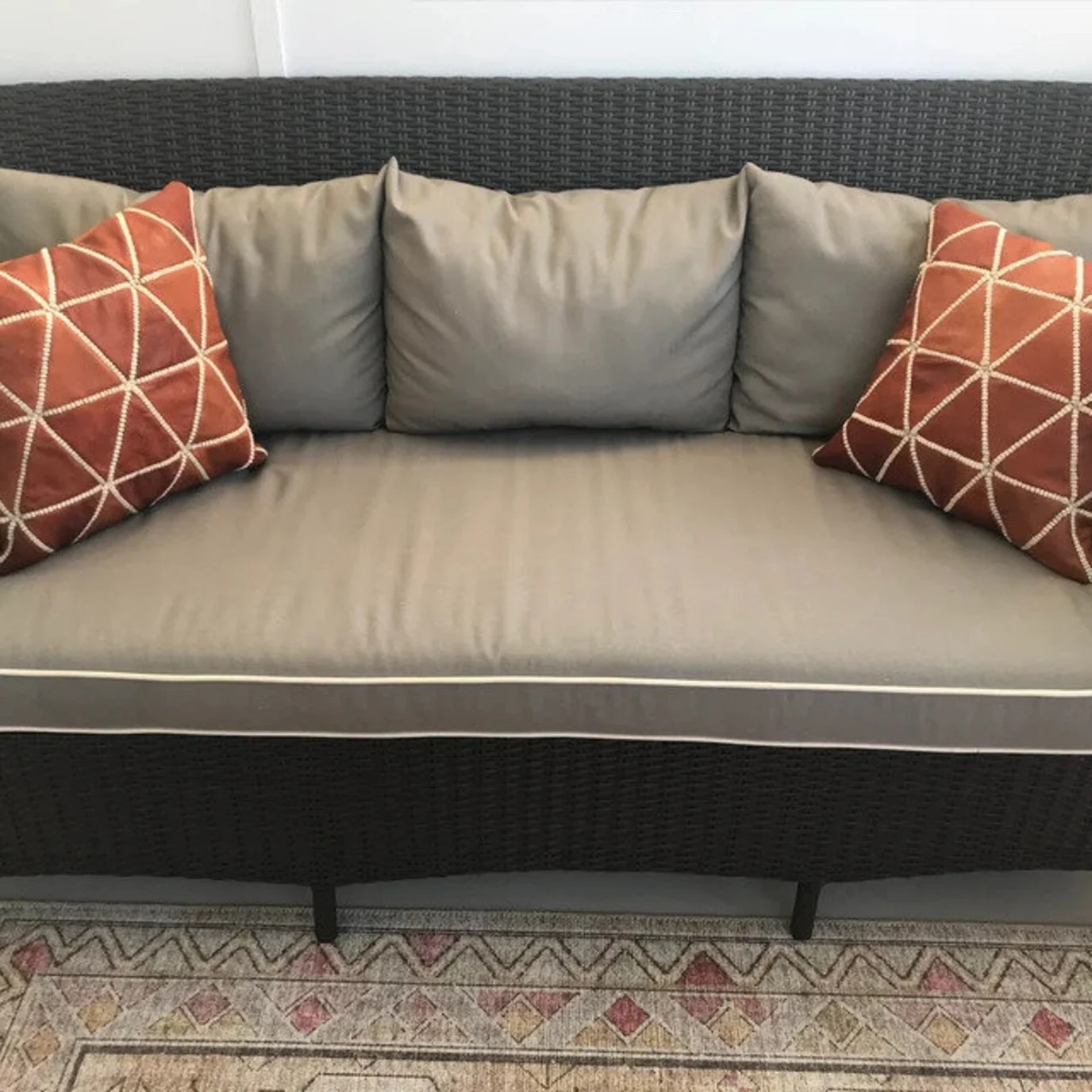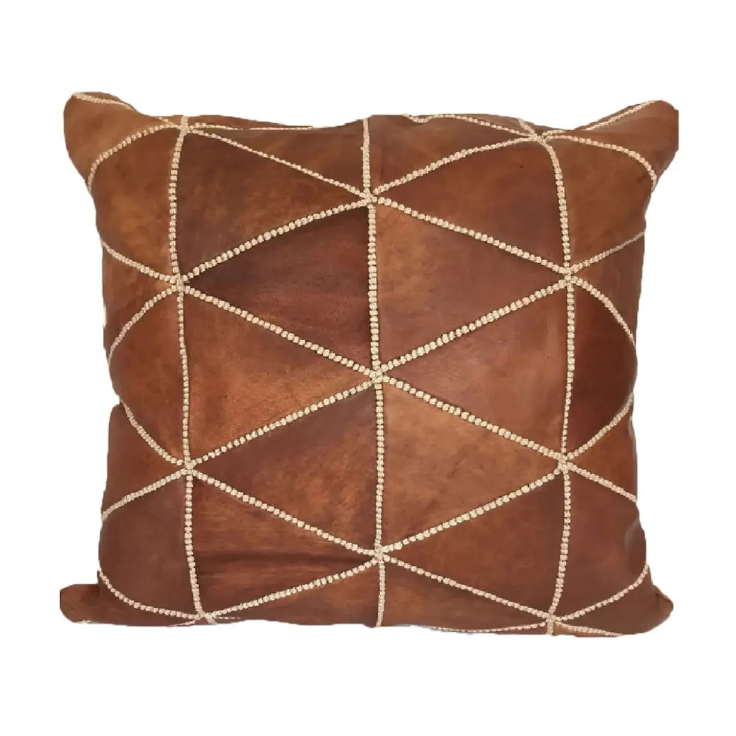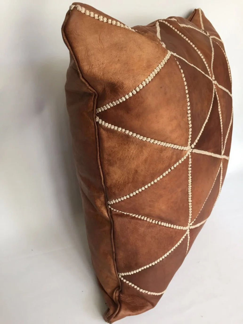 Beautiful stitched brown leather covers with zippered back. Poly fill inset