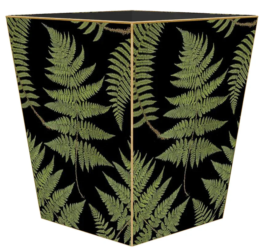 Ferns on Black back waste Paper basket